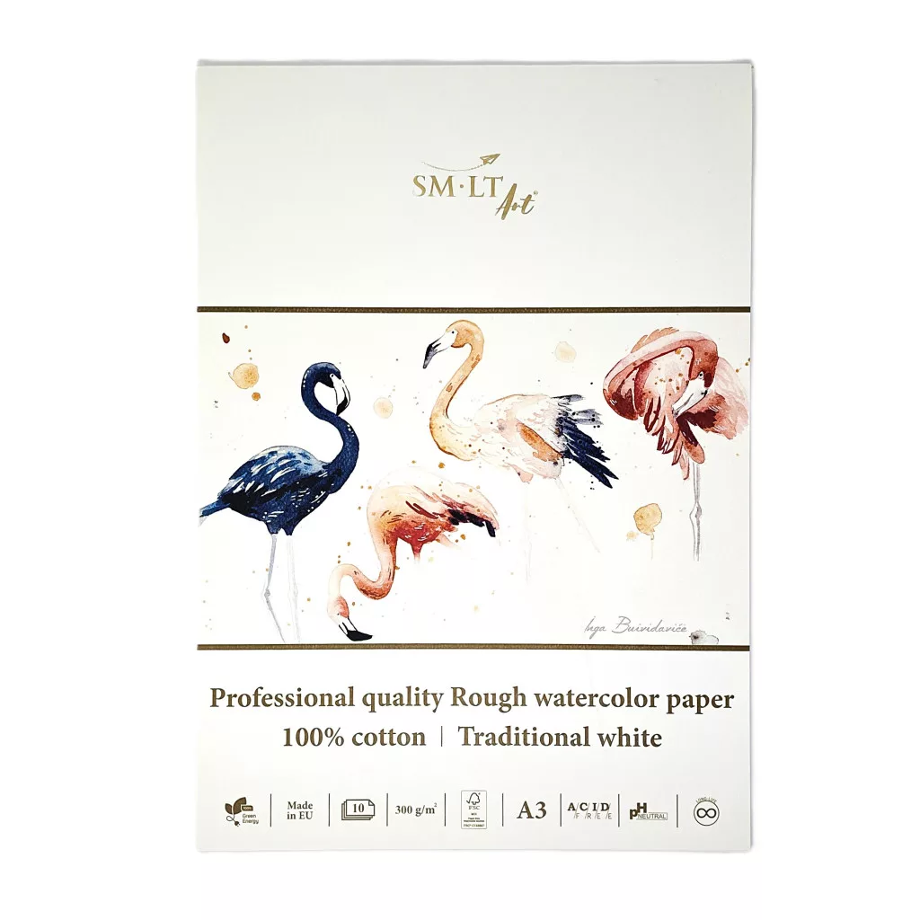 Akvarelltömb - SMLTArt Professional Watercolor 300gr, 100% pamut, érdes felületű - 10 lapos művésztömb A3-as méretű