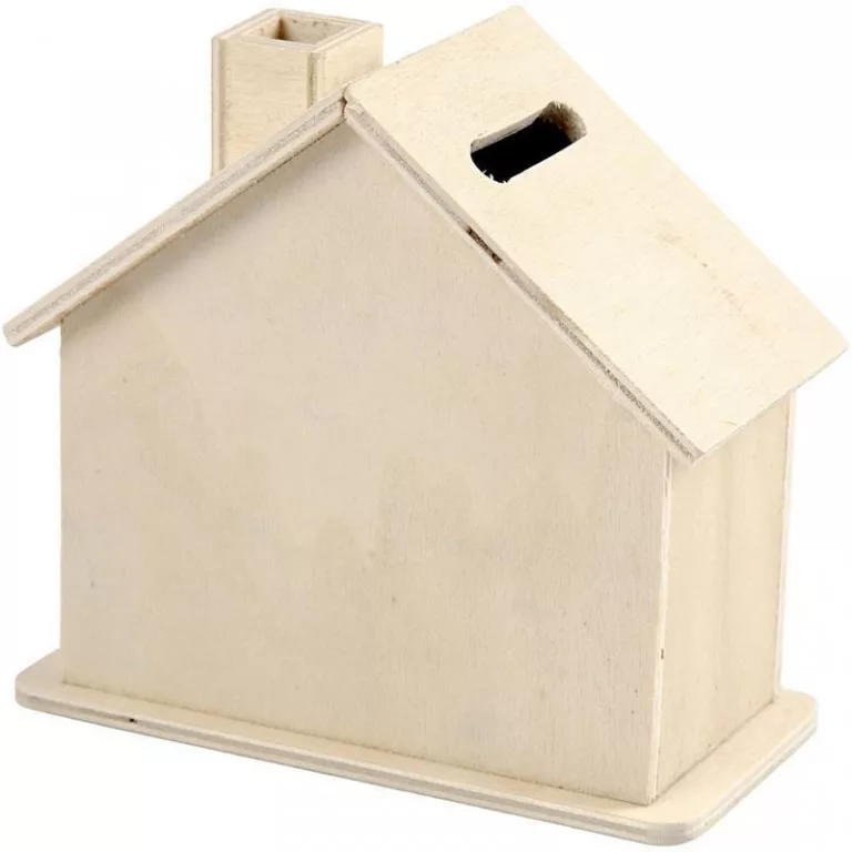 Fából készült persely, ház alakú