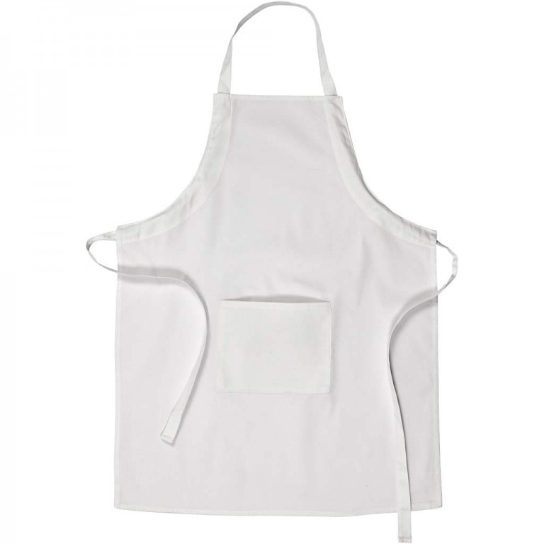 Praktikus fehér, 100% pamutból készült kötény nagy zsebbel. Festhető, batikolt vagy textilfestékekkel festhető.