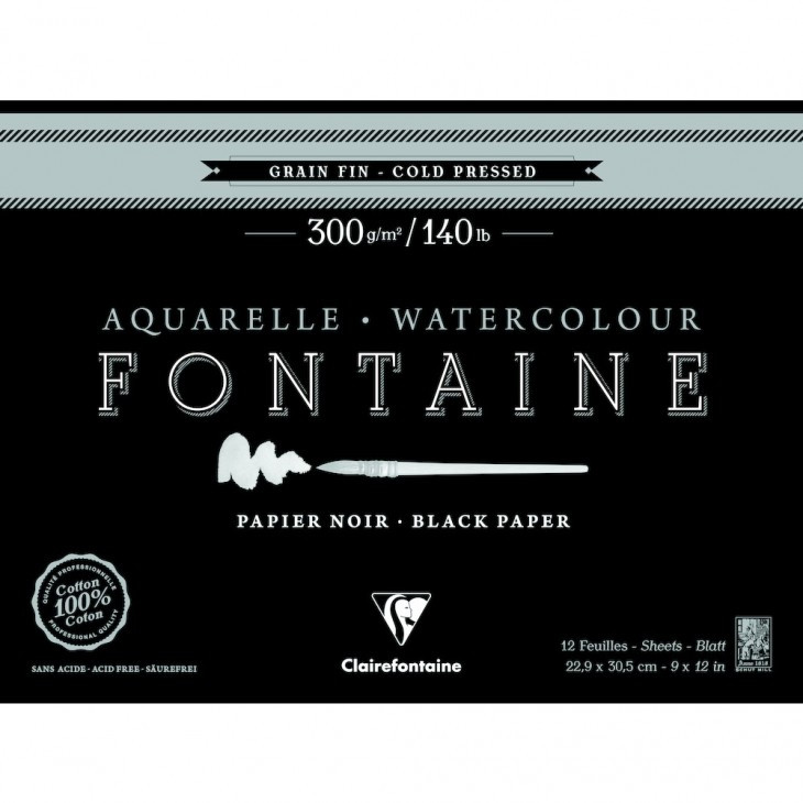 Fekete akvarell tömb Fontaine 26x36cm pamut 300g