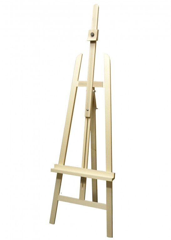 Cseh gyártmányú festőállvány tömör lucfenyőből. Teljesen elcsúsztatható alsó és felső vászonfogantyúval, a magassága szabadon állítható minden szokásos pozícióba.