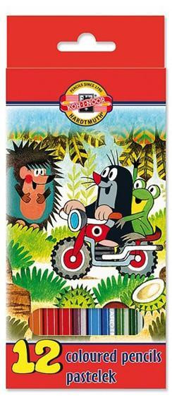 Koh-i-noor márkájú iskolai színes ceruzák papír csomagolásban. A készlet 12 színes ceruzát tartalmaz, amelyek inkább gyerekeknek és amatőröknek ajánlottak.