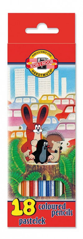 Koh-i-noor márkájú iskolai színes ceruzák papírdobozban. A készlet 18 színes ceruzát tartalmaz, amelyek inkább gyerekeknek és amatőröknek ajánlottak.