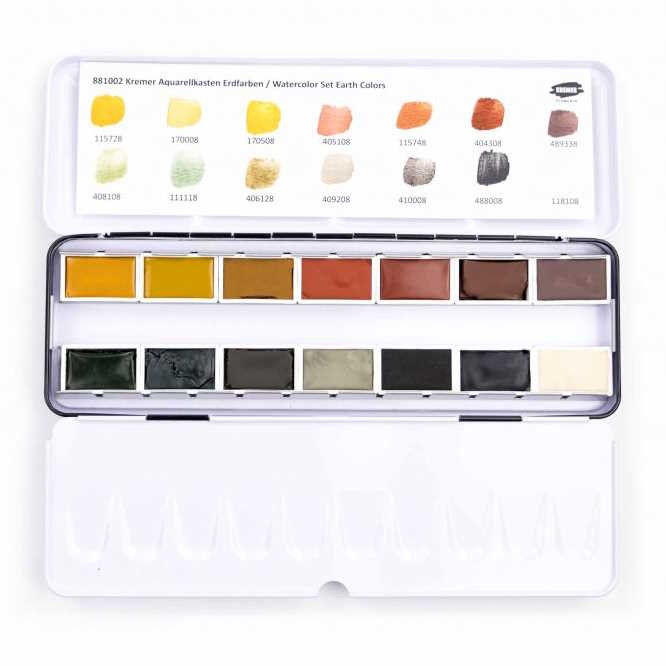 Kremer 881002 földszínű akvarellfesték készlet 14 darabos