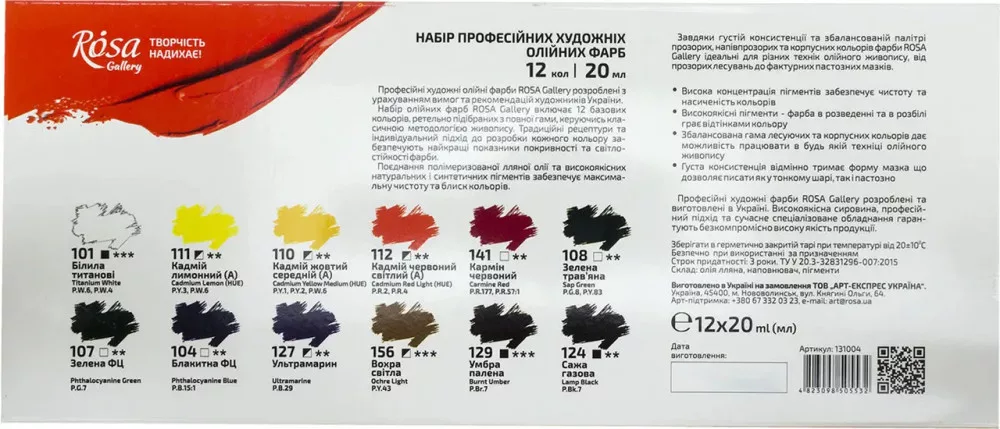 ÚJ Olajfesték készlet - Rósa Gallery - 12 x 20 ml tubusos - kartondobozban