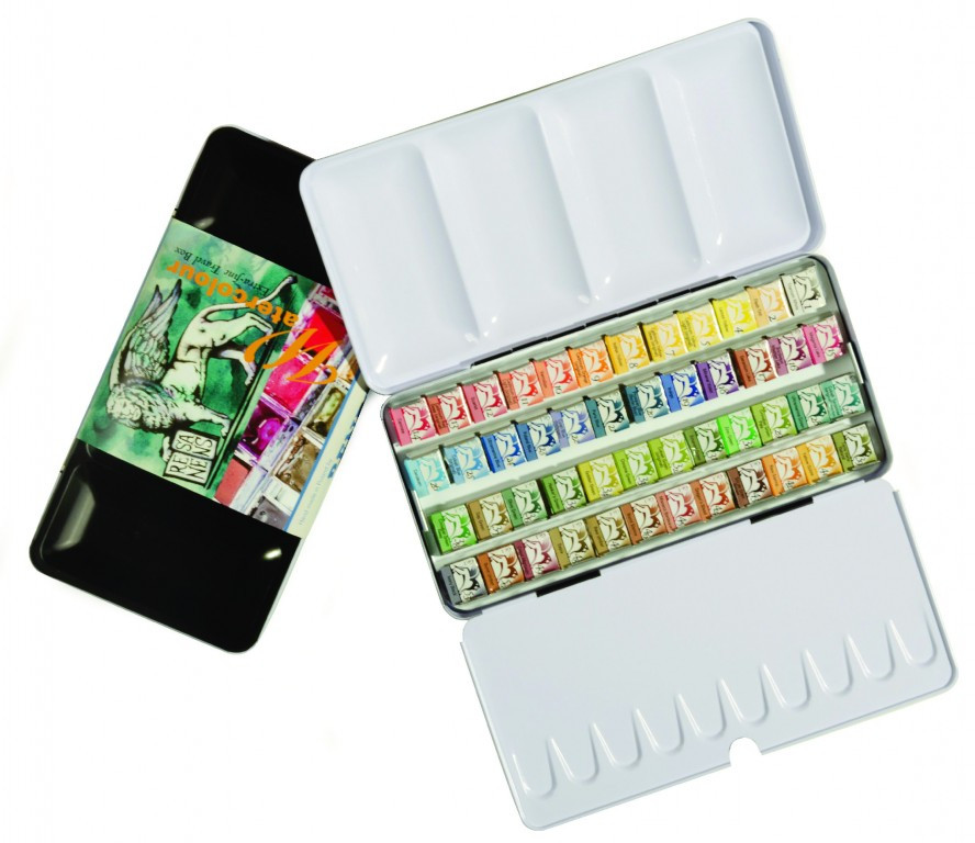 Kiváló minőségű akvarellfestékek nagyméretű készlete fémdobozban, felhajtható palettával. Természetes akácméz és gumiarábikum alapúak, hagyományos recept alapján. Ajánlott!