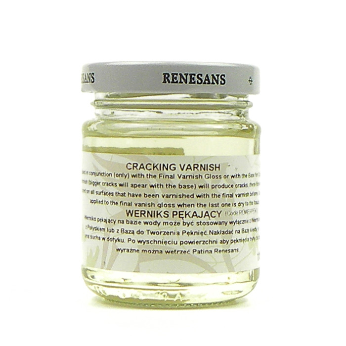 Repedősítő lakk dekupázshoz, amely repedéseket hoz létre különféle anyagok felületi rétegén. Vízbázisú, és patinával vagy festékkel kiemelhető.