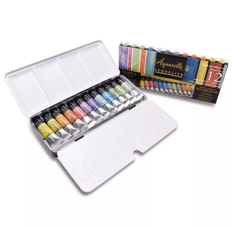 Akvarellfesték készlet Sennelier 12x10ml fémes színek