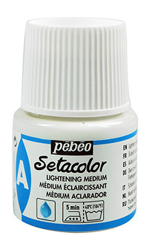 Világosító médium és hígító a Pébéo Setacolor textilfestékeihez 45 ml-es műanyag flakonban. A médiumot közvetlenül a színekhez kell adni, a hozzáadás nem csökkenti a színek élénkségét és minőségét.