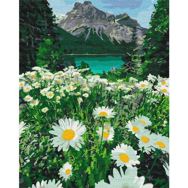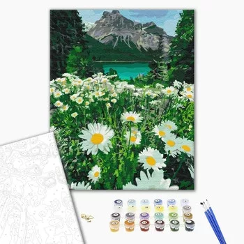 Számozott kifestő készlet vászonra 40x50 cm - Akrilfestékkel, ecsetekkel, felnőtteknek - Hegyi százszorszépek