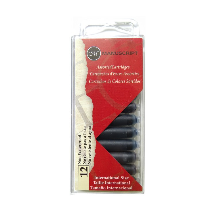 Speciális színű utántöltő tollkészlet szabványméretű utántöltő tollakhoz. A csomag 12 különböző színt tartalmaz.