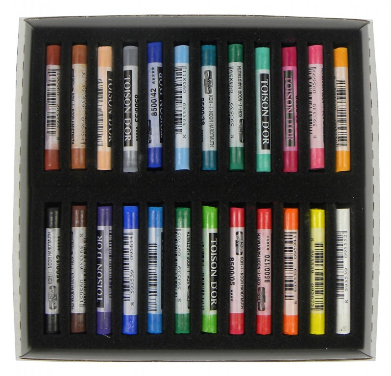 Toison porkréta készlet papírra és más anyagokra való rajzoláshoz. Könnyen felvihetőek, jól eldolgozhatók és eldolgozhatók. A készlet 24 alapárnyalatot tartalmaz.