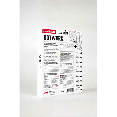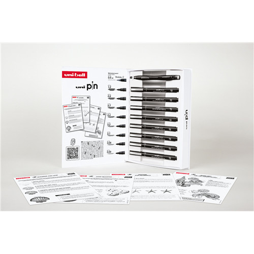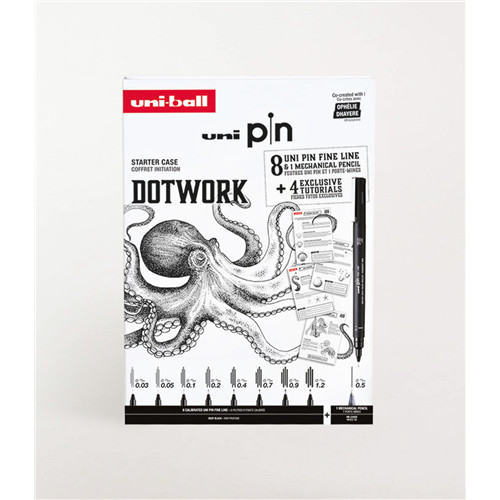 Tűfilc készlet - UNI PIN Dotworking 9 db-os készlet, Útmutatóval - fekete tűfilcek