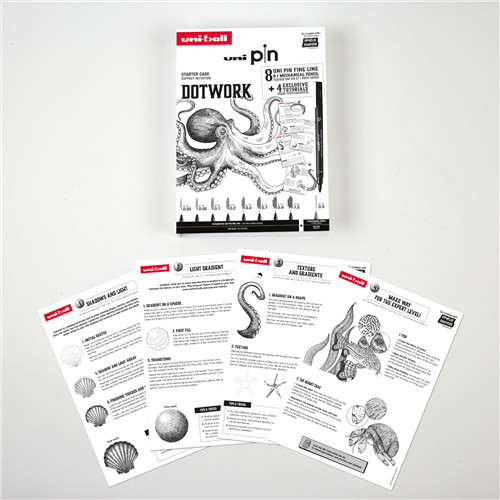 Dotworking Collection Set 9 pcs - black and gray fine liners & a Mechanical Pencil