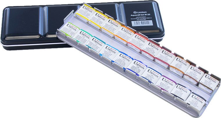 Umton akvarellfesték készlet, 20 darabos, fémdobozban