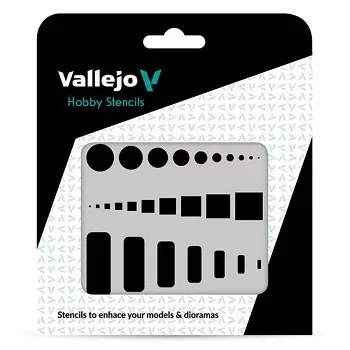 A Vallejo Stencils praktikus modellező sablonok, amelyeket valósághű minták, jelölések és hatások létrehozásához terveztek modelleken, miniatűrökön és diorámákon. Lehetővé teszik különböző motívumok egyszerű felhordását, például álcázási mintákat, technikai jelöléseket, számokat, feliratokat vagy kopási hatásokat. Precíz megmunkálásuknak köszönhetően segítenek éles és egyenletes vonalak elérésében airbrush-sal vagy ecsettel való munkánál.