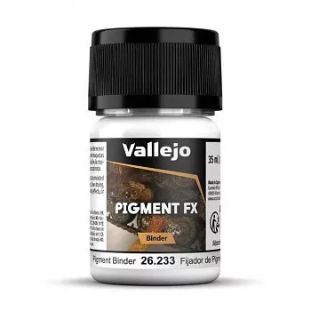 A Vallejo Pigment Binder egy speciális akril médium, amelyet száraz pigmentek modellek, diorámák és díszletek felületéhez való rögzítésére terveztek. Pigmentekkel keverve erős és tartós felületet hoz létre, amely megőrzi a por, szennyeződés vagy más koptatási hatások természetes megjelenését. Pontosabb kontrollt tesz lehetővé a pigment felhordásakor, és növeli azok tapadását az alapfelületen.