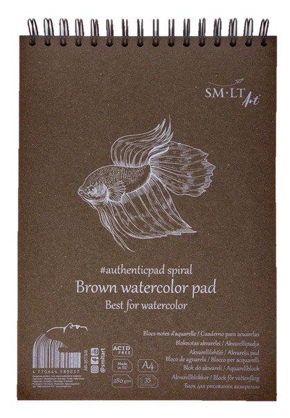 Vázlattömb - SMLT Black watercolor authenticpad, spirálos, mikroperforált - fekete, 300gr, 20 lapos A4