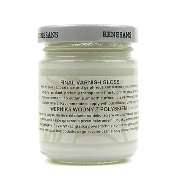 Zselatin állagú, fényes, végső dekupázs lakk. Tartós, tökéletesen átlátszó és fényes felületet képez, így védi a díszített tárgyakat.